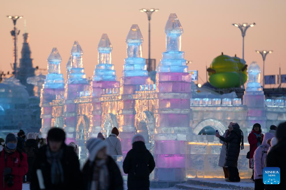 People visit the Harbin Ice-Snow World in Harbin, northeast China's Heilongjiang Province, Jan. 5, 2026. The 42nd Harbin International Ice and Snow Festival kicked off at the Harbin Ice-Snow World here on Monday. (Xinhua/Wang Jianwei)