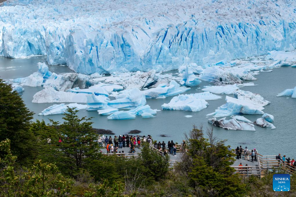 Tourists enjoy the scenery of Perito Moreno Glacier in Los Glaciares National Park, Santa Cruz Province, Argentina, Jan. 3, 2026. (Xinhua/Li Muzi)