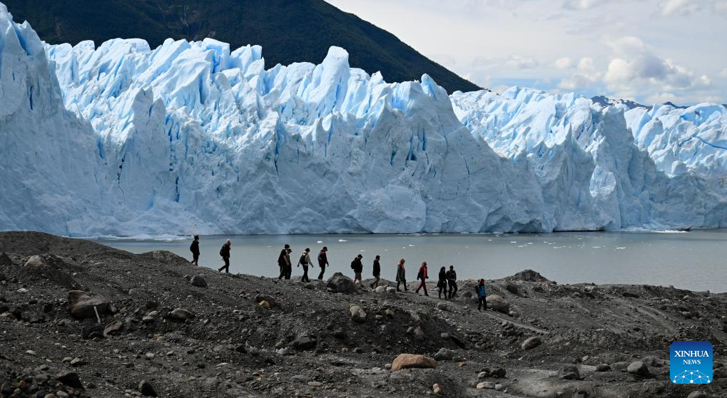 Tourists walk near Perito Moreno Glacier in Los Glaciares National Park, Santa Cruz Province, Argentina, Jan. 3, 2026. (Xinhua/Li Muzi)