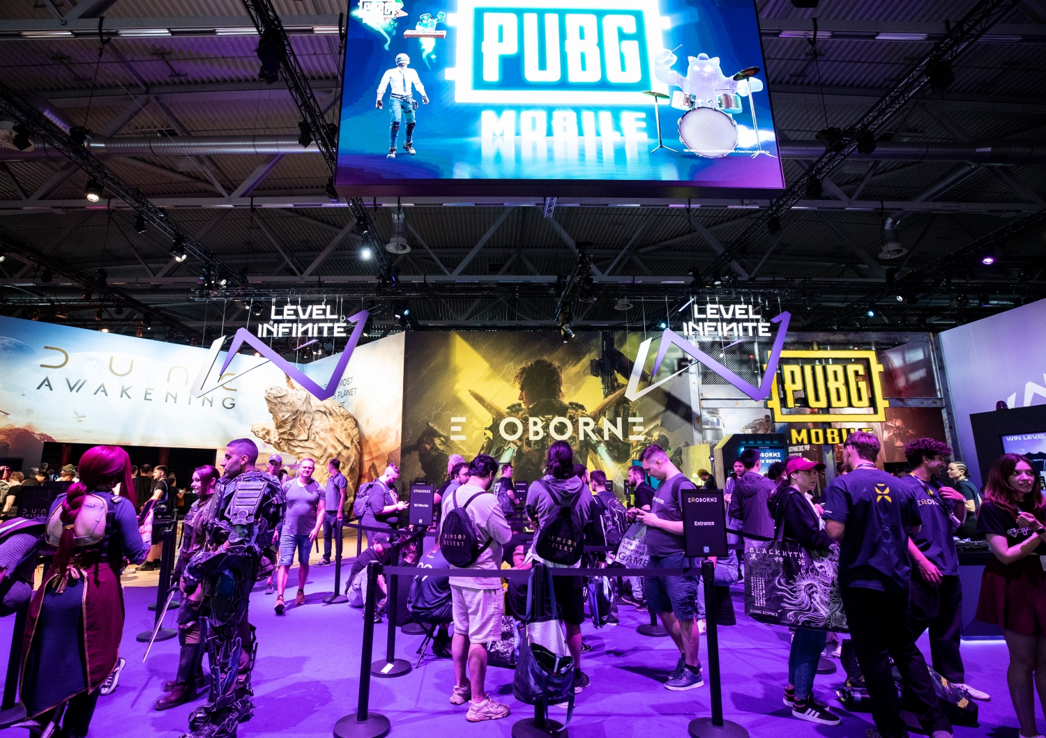 Visitors line up at Tencent's booth to try out games at Gamescom in Cologne, Germany, on Aug. 21, 2025. [Photo/Xinhua]