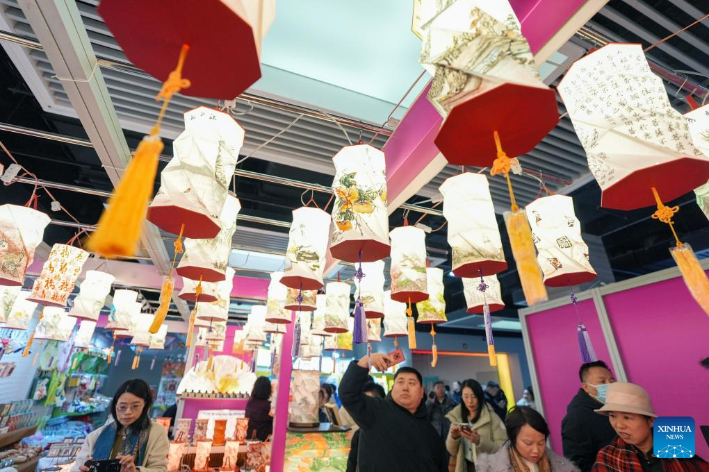 People visit the exhibition area of cultural products at the 2026 Beijing Book Fair in Beijing, capital of China, Jan. 8, 2026. The 2026 Beijing Book Fair kicked off here on Thursday, with over 400,000 titles on display. This year's book fair features more than 10 themed zones as well as an exhibition area for various cultural products. (Xinhua/Ju Huanzong)