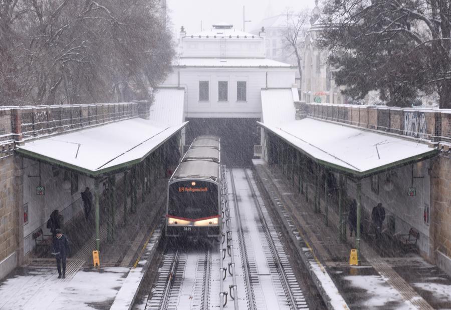 A metro train is seen at Stadtpark metro station in Vienna, Austria, Jan. 9, 2026. (Xinhua/He Canling)