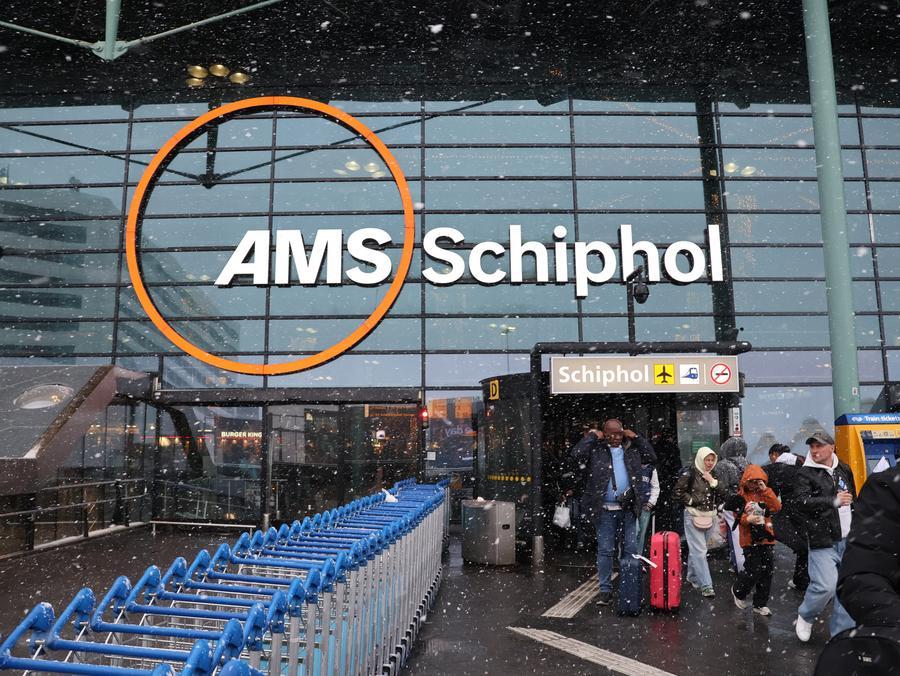 This photo taken on Jan. 7, 2026 shows the entrance of Amsterdam Schiphol Airport in Amsterdam, the Netherlands. (Photo by Sun Jingjing/Xinhua)