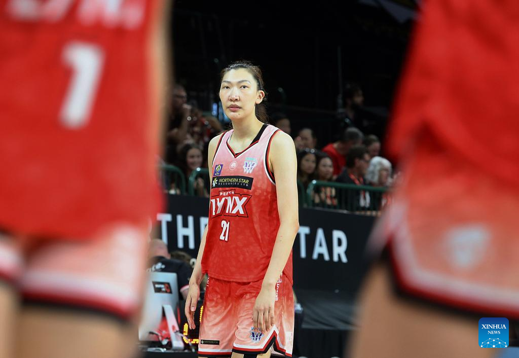 Han Xu of Perth Lynx is seen during the Women's National Basketball League (WNBL) basketball match between Perth Lynx and Adelaide Lightning in Perth, Australia on Jan. 10, 2026. (Photo by Zhou Dan/Xinhua)
