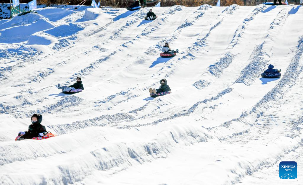 People enjoy snow slide at a scenic area in Qianxi County of Tangshan, north China's Hebei province, Jan. 11, 2026. (Photo by Liu Mancang/Xinhua)