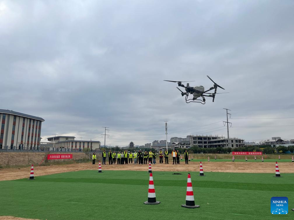 This photo taken on Sept. 17, 2025 shows a scene of a drone training lesson organized by the local government in Baiyin, northwest China's Gansu Province. [Photo/Xinhua]