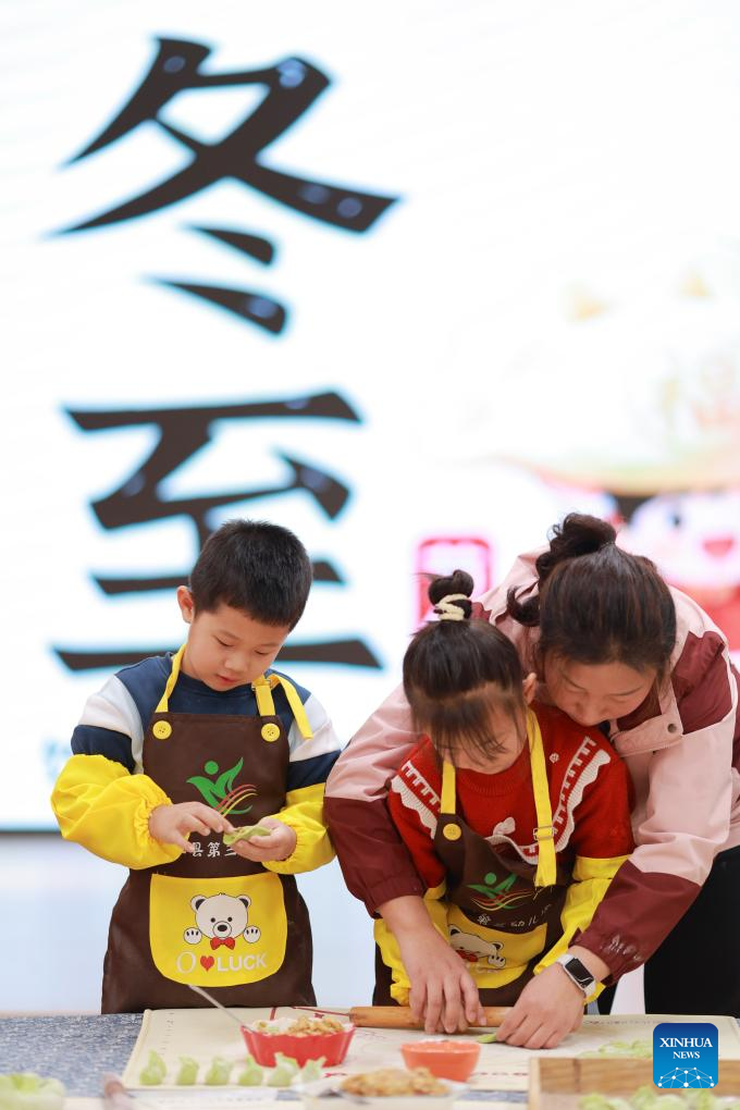 This photo taken on Dec. 19, 2025 shows children learning to make dumplings in the guidance of a teacher at a kindergarten in Neiqiu County, Xingtai City of north China's Hebei province.