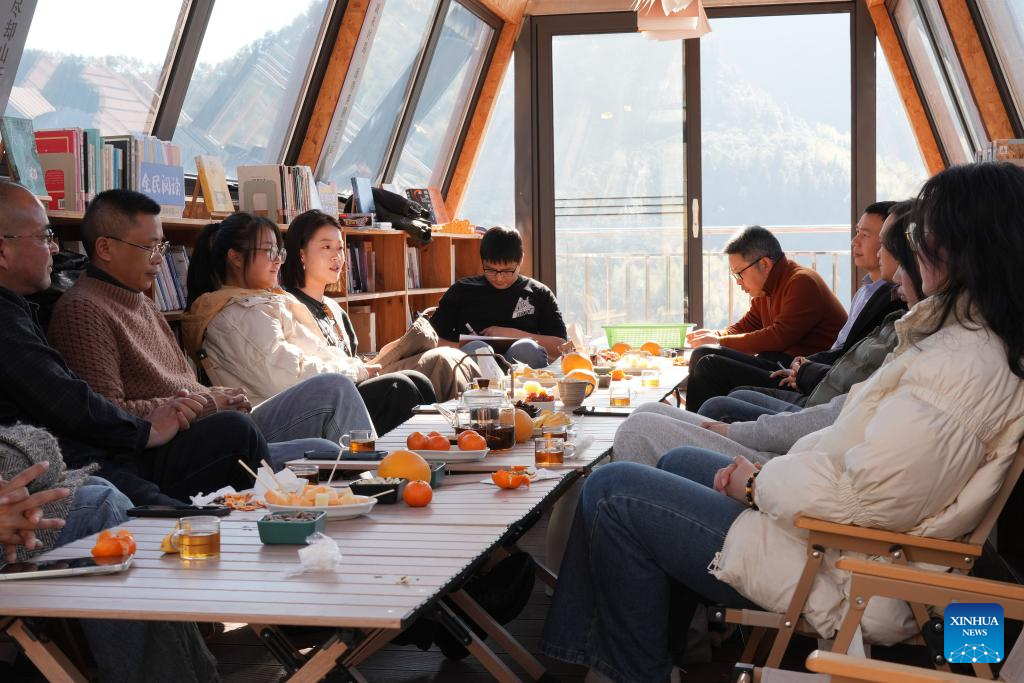 People take part in a cultural salon in Lulikeng Village of Changshan County, east China's Zhejiang Province, Jan. 14, 2026. Lulikeng Village has renovated its abandoned lime kilns into rural tourism facilities in recent years, turning the village into a destination for tourists from surrounding areas. Since 2024, various business sectors in the village have enabled over 150 villagers to find jobs right at their doorstep, and increased the village's income by more than 6 million yuan (about 0.86 million U.S. dollars). (Xinhua/Weng Xinyang)