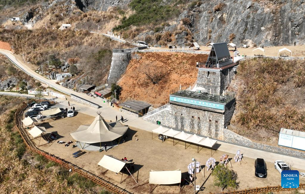 An aerial drone photo shows a view of the Lulikeng Village of Changshan County, east China's Zhejiang Province, Jan. 14, 2026. Lulikeng Village has renovated its abandoned lime kilns into rural tourism facilities in recent years, turning the village into a destination for tourists from surrounding areas. Since 2024, various business sectors in the village have enabled over 150 villagers to find jobs right at their doorstep, and increased the village's income by more than 6 million yuan (about 0.86 million U.S. dollars). (Xinhua/Weng Xinyang)