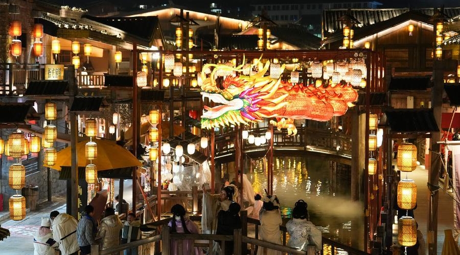 Tourists have fun at Nanyueli, a food and cultural block in Nanyue District of Hengyang, central China's Hunan Province, on Jan. 9, 2026. [Photo/Xinhua]