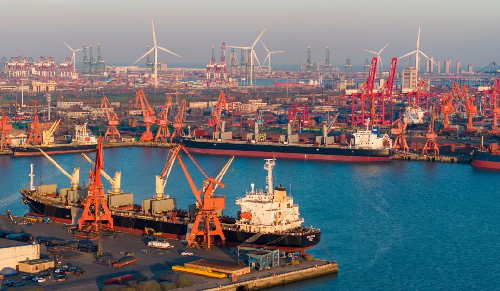 A drone photo taken on Jan. 2, 2026 shows a view of a terminal of a subsidiary of Tianjin Port Holdings Co., Ltd. at Tianjin Port in north China's Tianjin. [Photo/Xinhua]