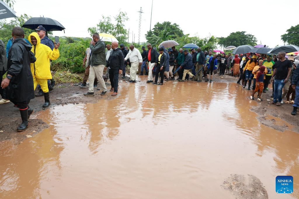 South African President Cyril Ramaphosa inspects flood-hit areas in Nkomazi, Mpumalanga Province, South Africa, on Jan. 19, 2026. [Photo/Xinhua]