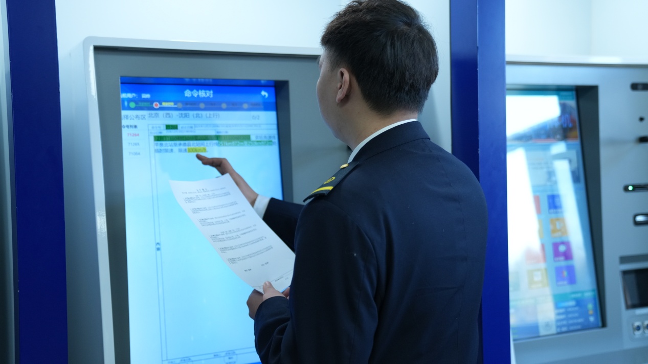 An EMU driver uses the self-service on- and off- duty system at Chaoyang EMU Depot of China Railway Beijing Group Co., Ltd., Jan. 20, 2026. [Photo by ZhangYuxin/China.org.cn]