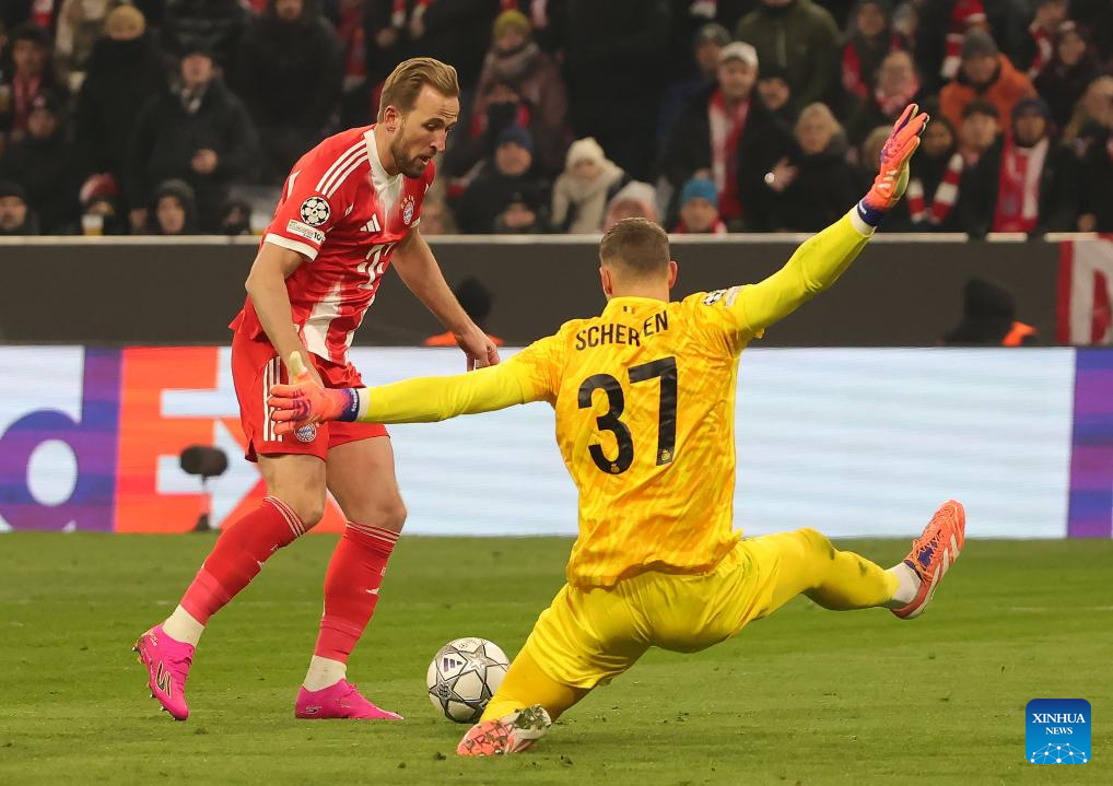 Kjell Scherpen (R), goalkeeper of Union Saint-Gilloise, defends Harry Kane of Bayern Munich during the UEFA Champions League match between Bayern Munich and Union Saint-Gilloise in Munich, Germany, Jan. 21, 2026. (Photo by Philippe Ruiz/Xinhua)