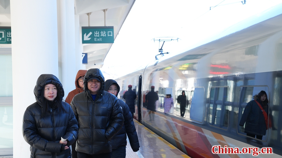 Passengers prepare to board a train bound for Beijing at Chengdenan Railway Station in Chengde, Hebei province, Jan. 22, 2026. [Photo by Zhang Yuxin/China.org.cn]