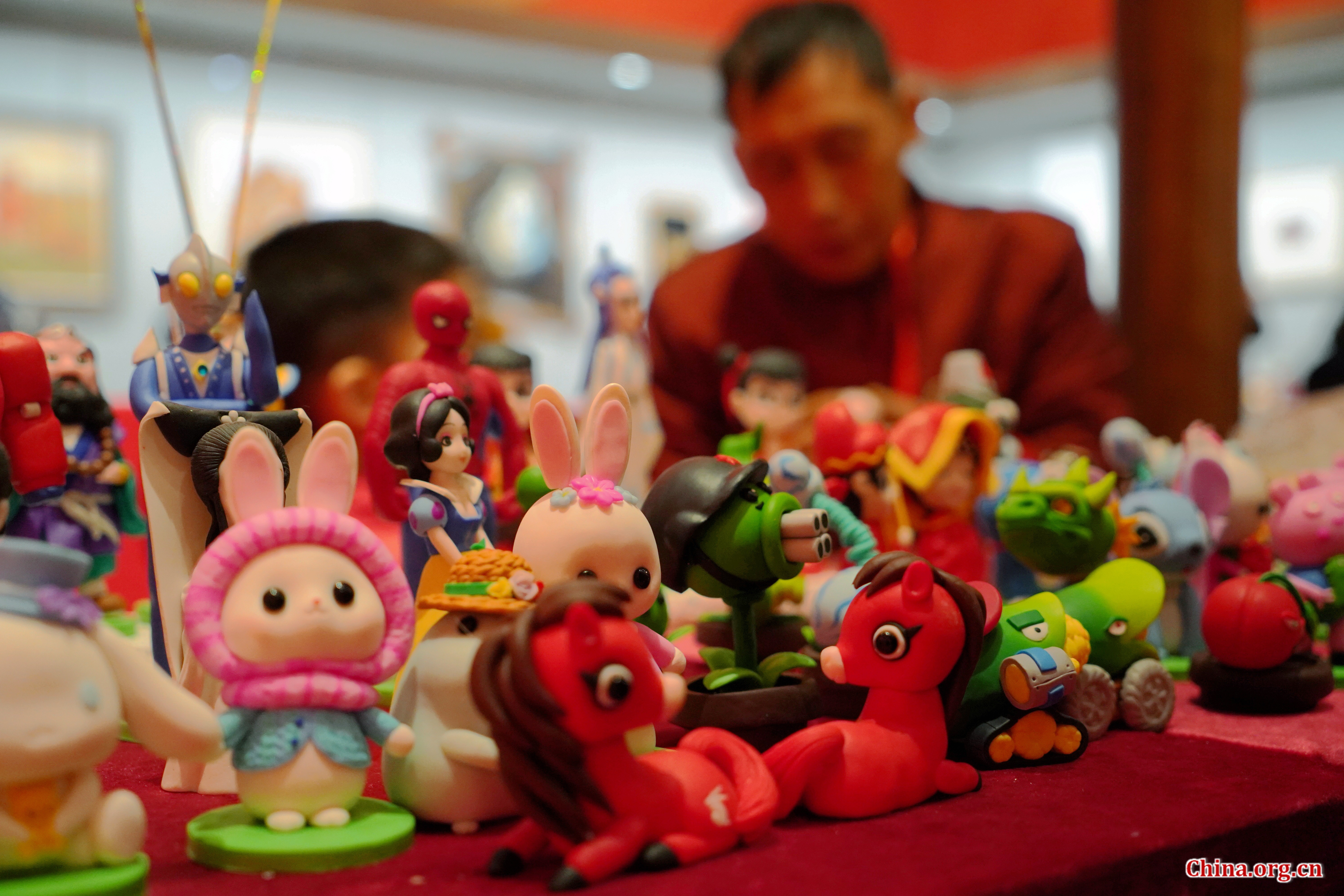 A variety of dough figurine artworks, ranging from traditional figures to modern cartoon characters, on display at the Chinese Traditional Culture Museum in Beijing, Jan. 21, 2026. [Photo by Wang Yiming/China.org.cn]