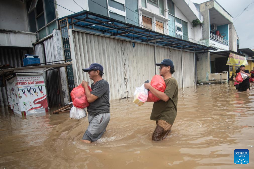 People wade through floodwaters in South Tangerang, Banten Province, Indonesia, Jan. 23, 2026. (Photo by Agung Kuncahya B./Xinhua)