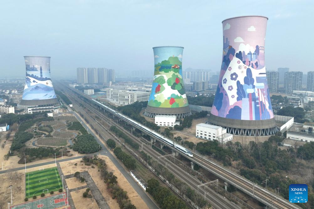 A drone photo taken on Jan. 25, 2026 shows a bullet train running in Changzhou City, east China's Jiangsu province. A new train schedule is put into effect in China from Jan. 26. 2026. (Photo by Chen Wei/Xinhua)