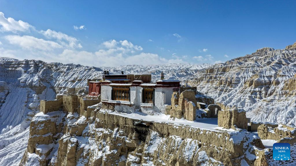 This aerial drone photo shows the ruins of the Guge Kingdom in Zanda county of Ngari prefecture, southwest China's Xizang Autonomous Region, Jan. 24, 2026. (Photo by Tinzen Tseten/Xinhua)