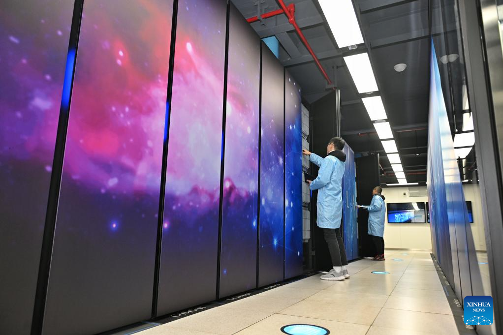Researchers inspect devices at the National Supercomputing Center in Tianfu New Area, southwest China's Sichuan Province, Jan. 10, 2025. (Xinhua/Liu Kun)