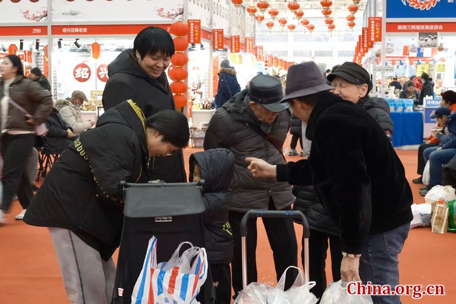 A family happily checks their haul of New Year's purchases at the fair in Beijing, Jan. 25, 2026. [Photo by Liao Jiaxin/China.org.cn]
