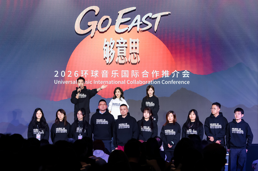Members of the International Cooperation Department of Universal Music China make their appearance at the promotion event for international cooperation in Beijing, Jan. 22, 2026. [Photo courtesy of Universal Music China]