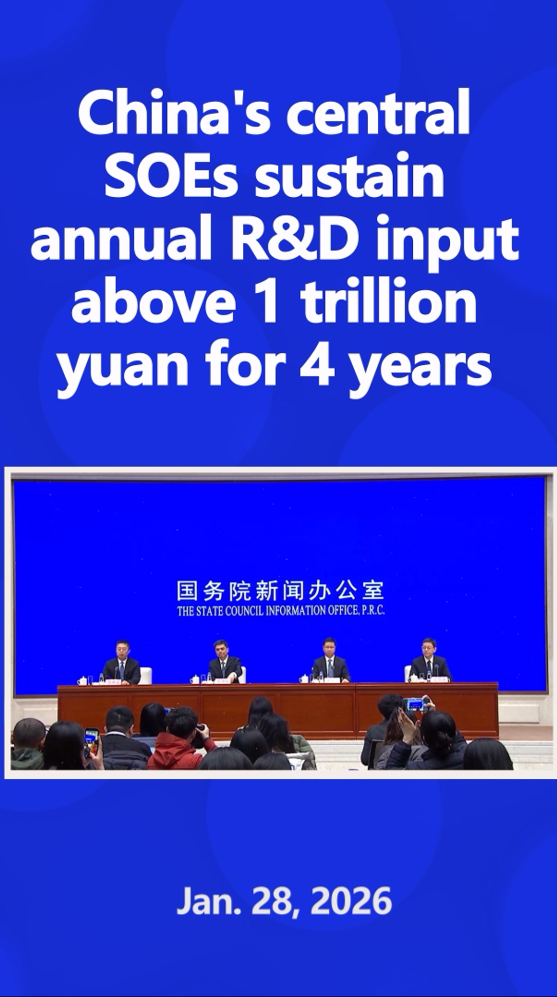 China's centrally administered state-owned enterprises have been continuously strengthening scientific and technological innovation, with research and development spending remaining above 1 trillion yuan (US$143.99 billion) for four consecutive years, said Pang Xiaogang, vice chairman of the State-owned Assets Supervision and Administration Commission of the State Council, at a press conference Wednesday.
