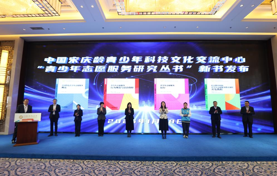 1月28日,“青少年志愿服务研究丛书”新书发布会在中国宋庆龄青少年科技文化交流中心(以下简称“宋庆龄青少中心”)举行。中央社会工作部志愿服务促进中心、团中央青年志愿者行动指导中心、联合国志愿人员组织中国办公室、《中国志愿》杂志社、中国少年儿童新闻出版总社、吉林外国语大学、宋庆龄青少中心等机构代表出席会议,并共同为丛书揭幕。