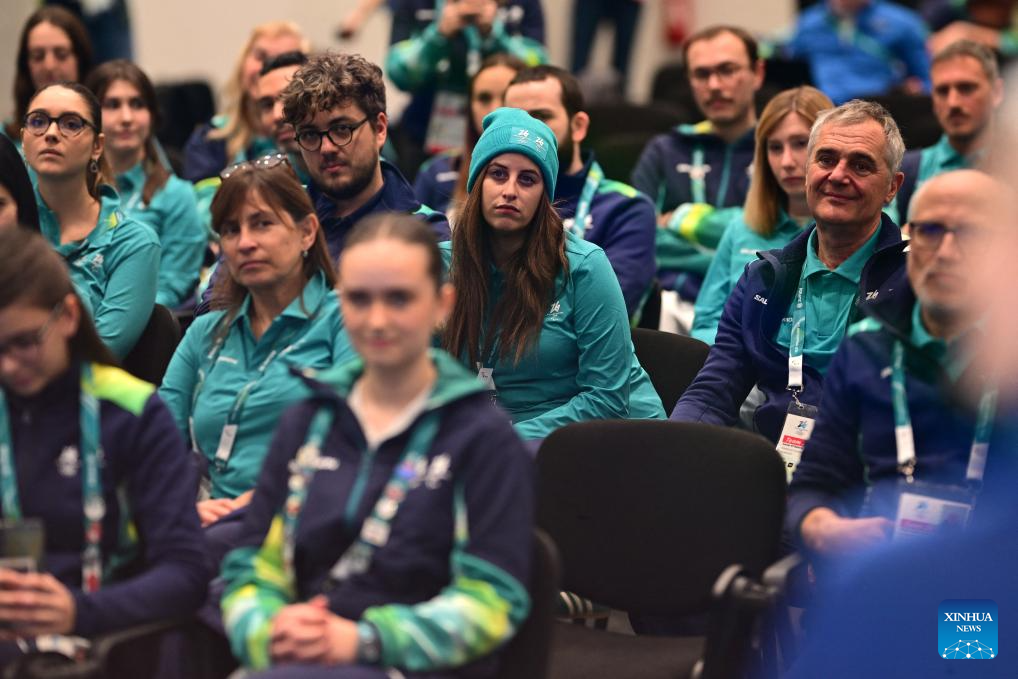 Milano Cortina 2026 volunteers attend a meeting with IOC President Kirsty Coventry in Milan, Italy, Jan. 29, 2026. (Photo by Daniele Mascolo/Pool Photo via Reuters)