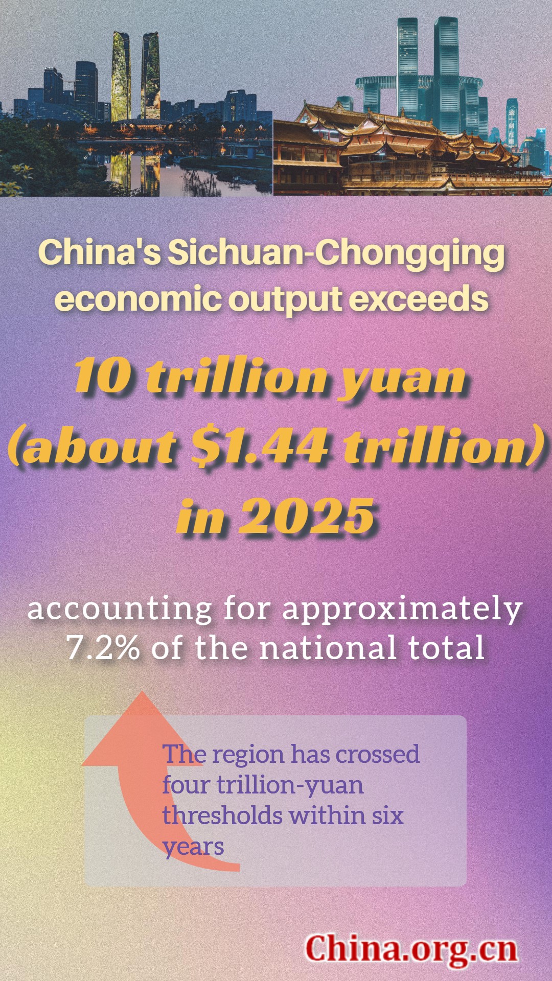 China's Sichuan-Chongqing economic output exceeds 10 trillion yuan