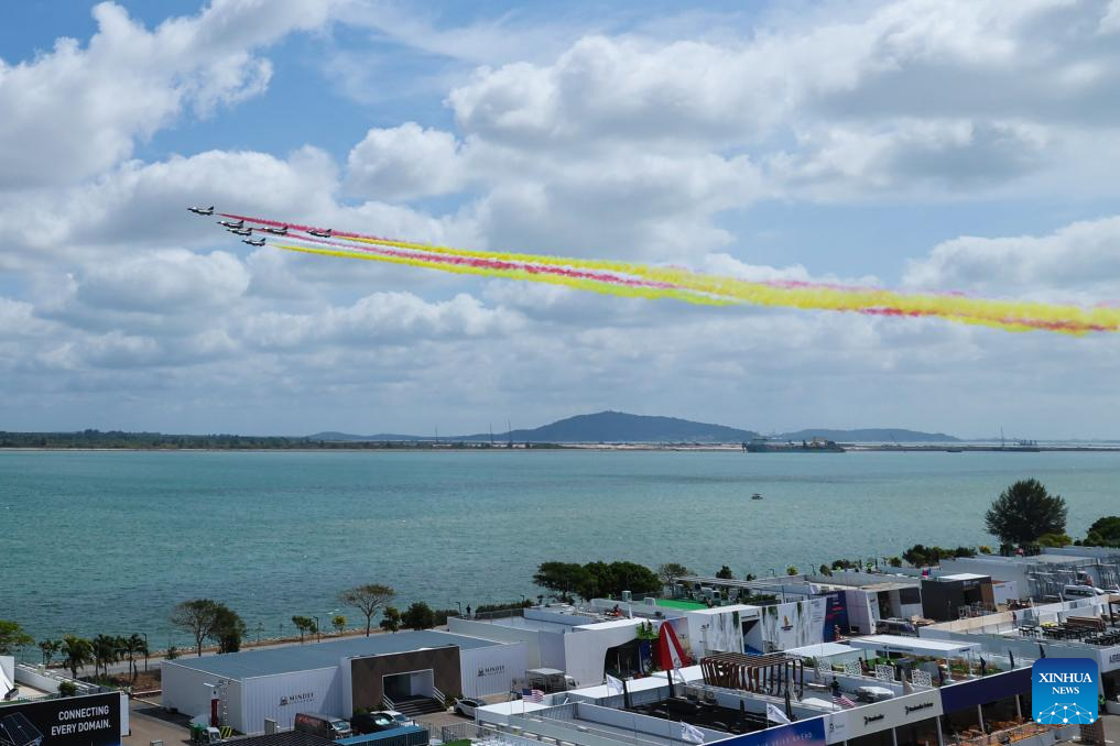 Aircraft of the Bayi Aerobatic Team of the Chinese People's Liberation Army (PLA) Air Force conduct training exercises for the 10th Singapore Airshow over the sea near Singapore's Changi Airport in Singapore, Jan. 30, 2026. [Photo/Xinhua]