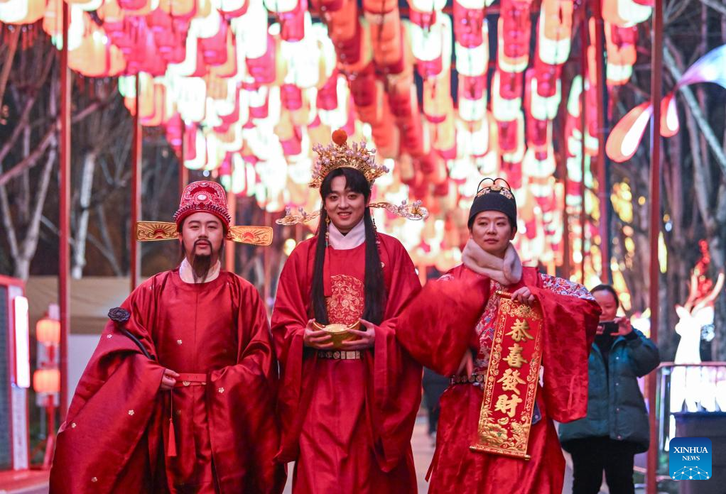 Staff members in traditional costumes are pictured at a lantern festival at the Garden Expo Park in southwest China's Chongqing Municipality, Jan. 30, 2026.