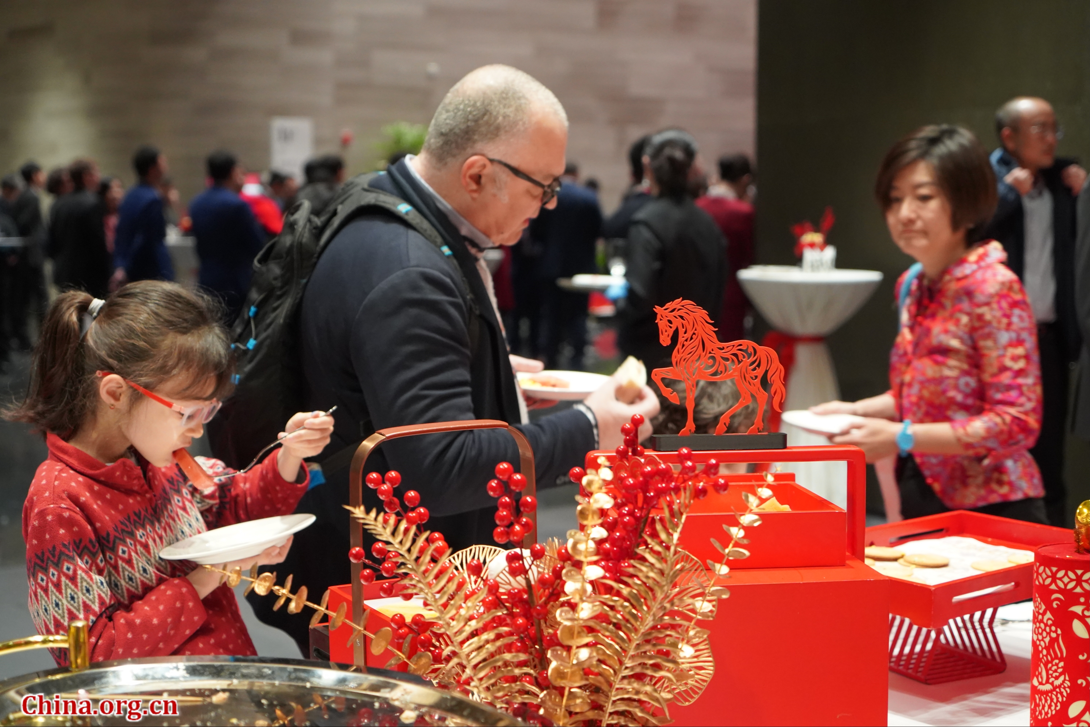 Foreign journalists and their families dine together at a Spring Festival reception in Beijing, Jan. 30, 2026. [Photo by Zhang Yuxin/China.org.cn]