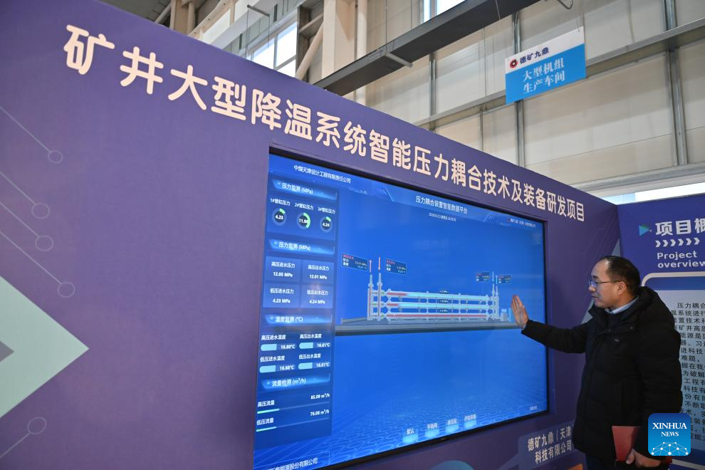 A staff member introduces pressure coupling devices at Dekuang Jiuding (Tianjin) Technology Co., Ltd. in the Beijing-Tianjin Zhongguancun Tech Town, in Tianjin, north China, Jan. 23, 2026. (Xinhua/Sun Fanyue)