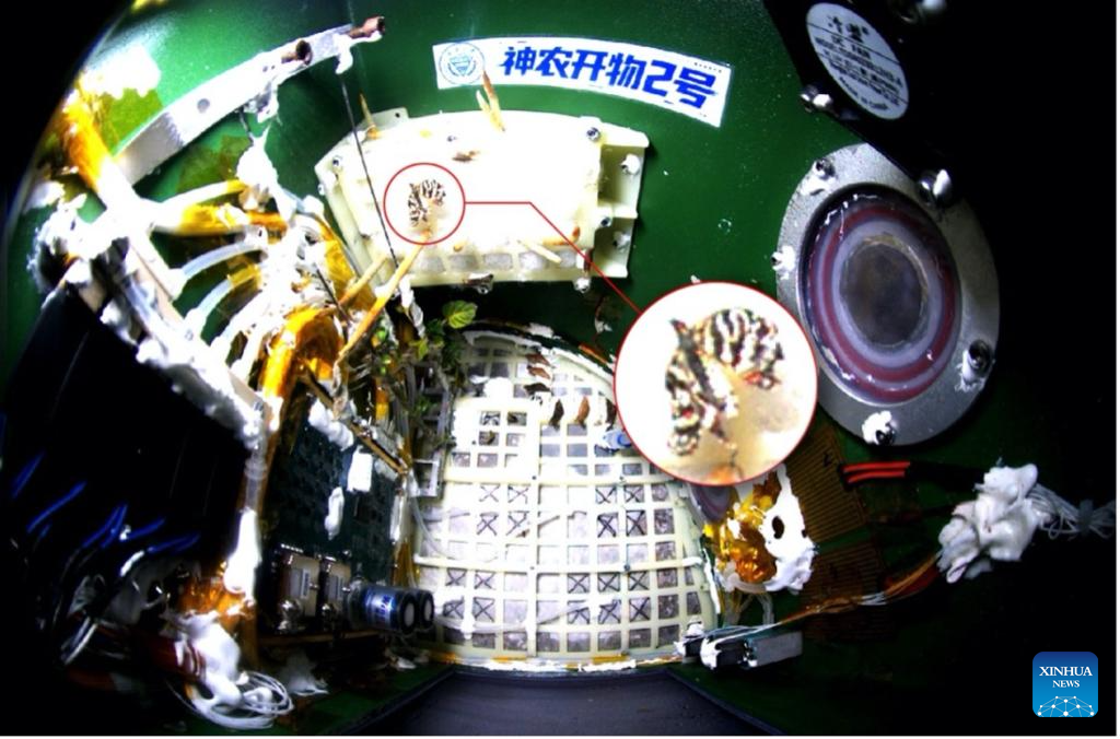 This photo taken in space on Dec. 15, 2025 shows the emerged butterfly. [Photo/Xinhua]