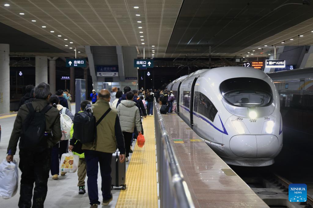 Passengers board a train at Shenzhen North Railway Station in Shenzhen, south China's Guangdong Province, Feb. 2, 2026. (Xinhua/Mao Siqian)