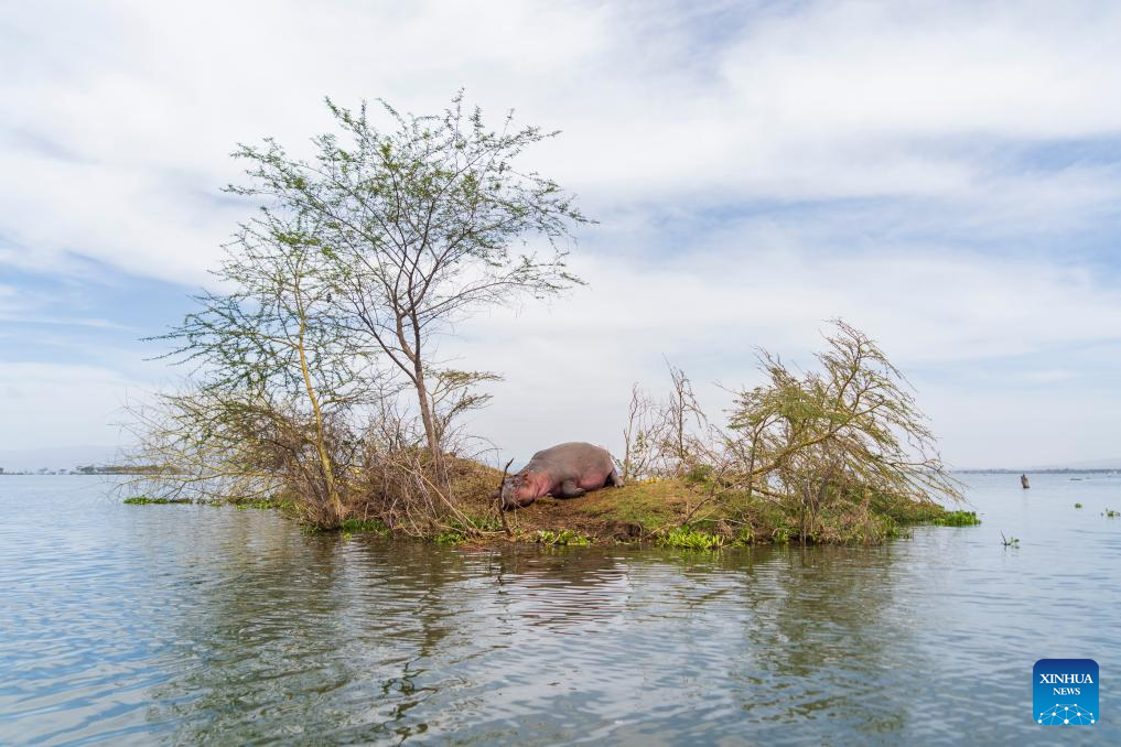 A hippo rests on a small island in Lake Naivasha in Nakuru County, Kenya, Feb. 1, 2026. World Wetlands Day is observed annually on Feb. 2 to raise global awareness of the vital role of wetlands for people, nature and culture. Kenya boasts one of the greatest diversity of wetland types in East Africa, with wetlands such as Lake Amboseli and Lake Naivasa playing a significant role in local water resource security, biodiversity conservation, food production and climate regulation. (Xinhua/Xie Jianfei)