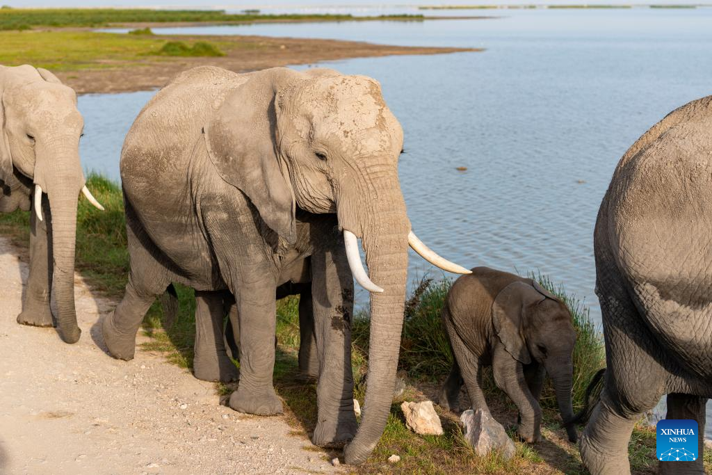 African elephants walk by the shores of Lake Amboseli in Kajiado County, Kenya, Jan. 8, 2026. World Wetlands Day is observed annually on Feb. 2 to raise global awareness of the vital role of wetlands for people, nature and culture. Kenya boasts one of the greatest diversity of wetland types in East Africa, with wetlands such as Lake Amboseli and Lake Naivasa playing a significant role in local water resource security, biodiversity conservation, food production and climate regulation. (Xinhua/Xie Jianfei)
