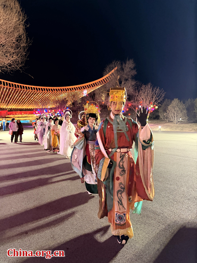Performers dressed in traditional mythical attire interact with the visitors at the Beijing Expo Park in Yanqing district, Jan. 31, 2026. [Photo by Wan Lina/China.org.cn]