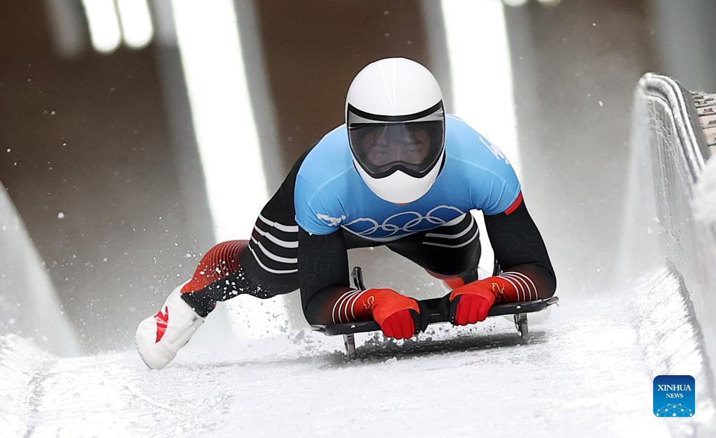 Yan Wengang of China competes during skeleton men heat of Beijing 2022 Winter Olympics at National Sliding Centre in Yanqing District, Beijing, capital of China, Feb. 11, 2022. (Xinhua/Yao Jianfeng)