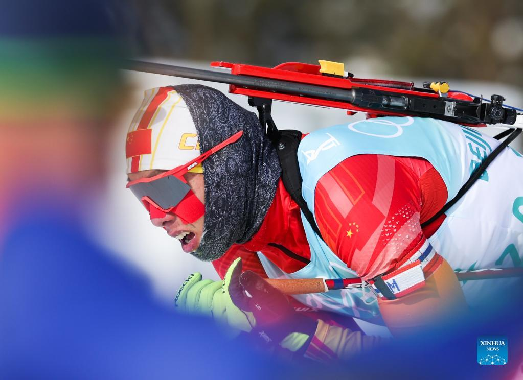 Yan Xingyuan of China competes during the biathlon men's 4x7.5 km relay of Beijing 2022 Winter Olympics at Zhangjiakou, north China's Hebei Province, Feb. 15, 2022. (Xinhua/Ding Ting)