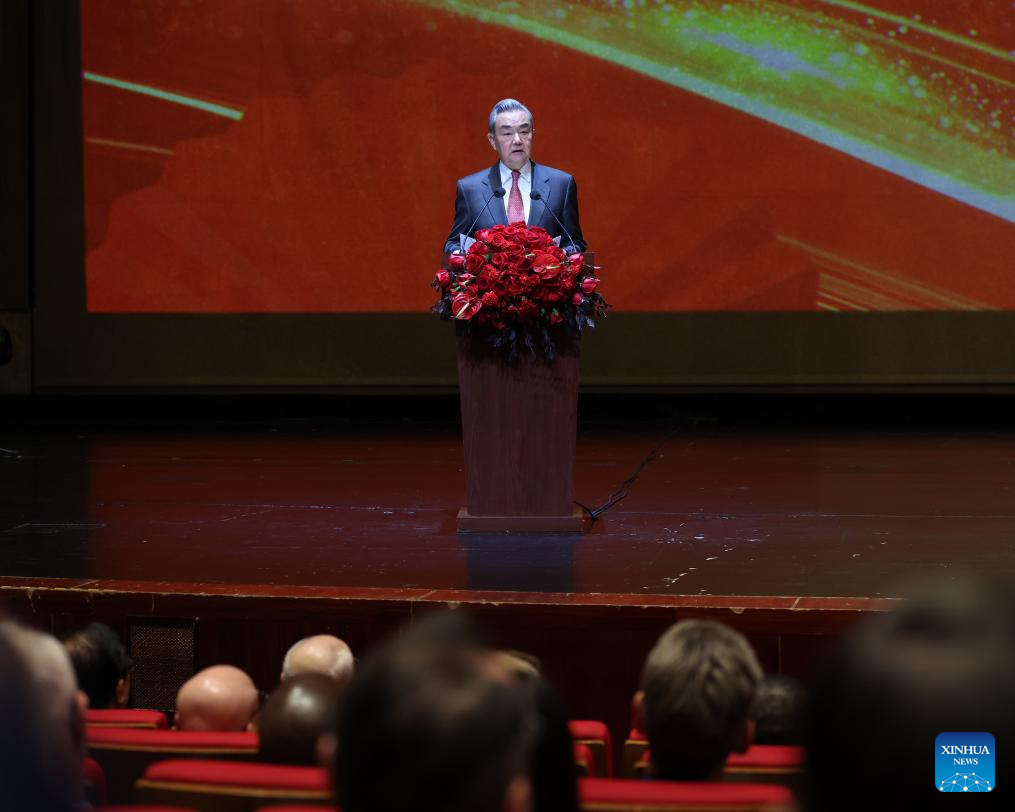 Chinese Foreign Minister Wang Yi, also a member of the Political Bureau of the Communist Party of China Central Committee, attends and addresses the Chinese Foreign Ministry's 2026 New Year reception in Beijing, capital of China, Feb. 5, 2026. [Photo/Xinhua]