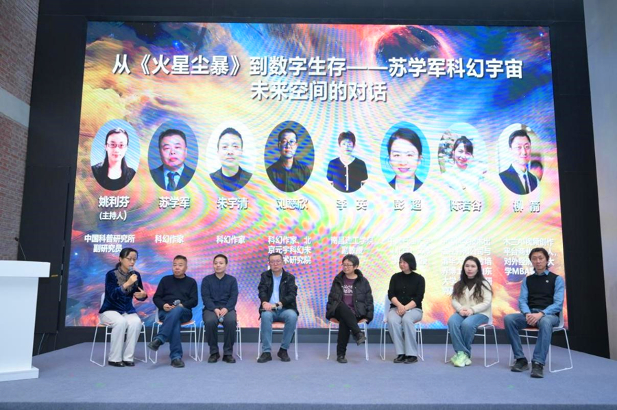 During a roundtable discussion, sci-fi writers including Su, Liu Cixin and Zhu Yuqing, researchers Li Ying, Peng Chao and Chen Ruogu, and Mulan's Liu Jian discussed "From 'Martian Dust Storm' to Digital Existence: A Dialogue on the Future Space of Su Xuejun's Sci-Fi Universe."