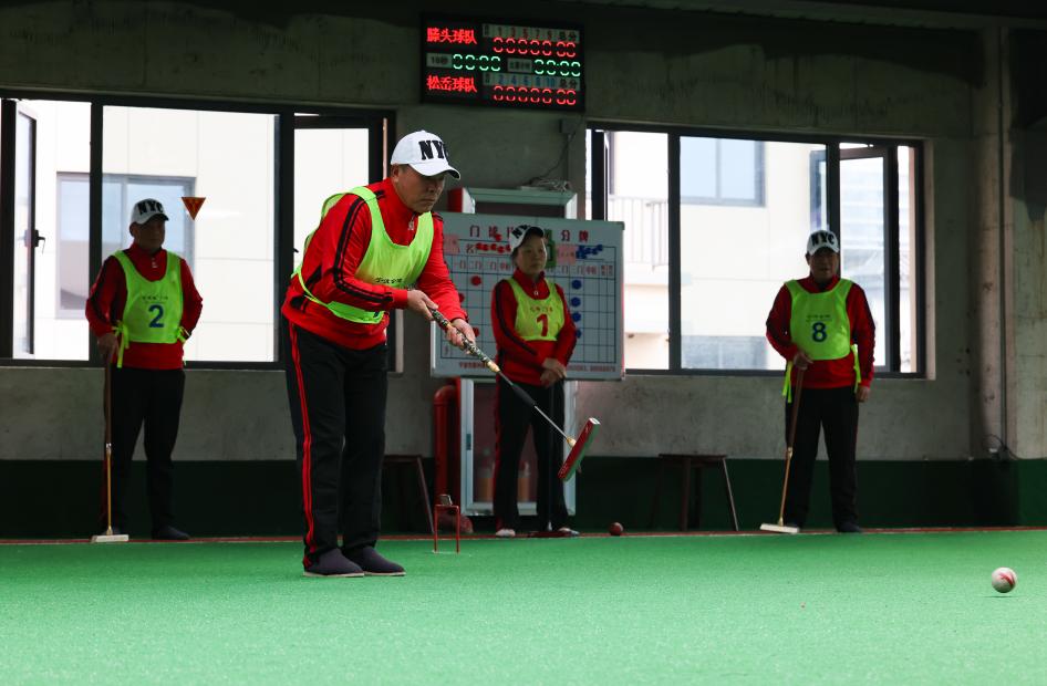 On Feb. 4, a gateball match brought together elderly residents at a village sports ground. Among them was Fu Bainian, now in his 70s, a former agricultural technician who became a nationally certified gateball referee after retirement. With support from the village committee, he later helped establish a gateball team that has drawn many older villagers.