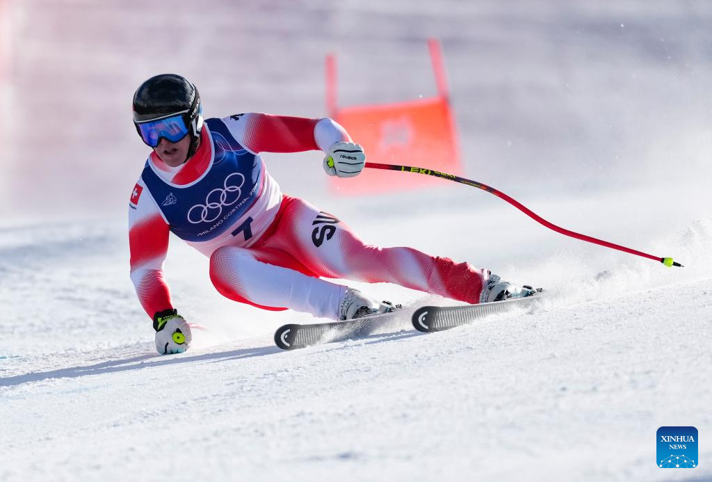 Franjo von Allmen of Switzerland competes during the alpine skiing men's Super-G at the Milan-Cortina 2026 Olympic Winter Games in Bormio, Italy, Feb. 11, 2026. (Xinhua/Hu Huhu)