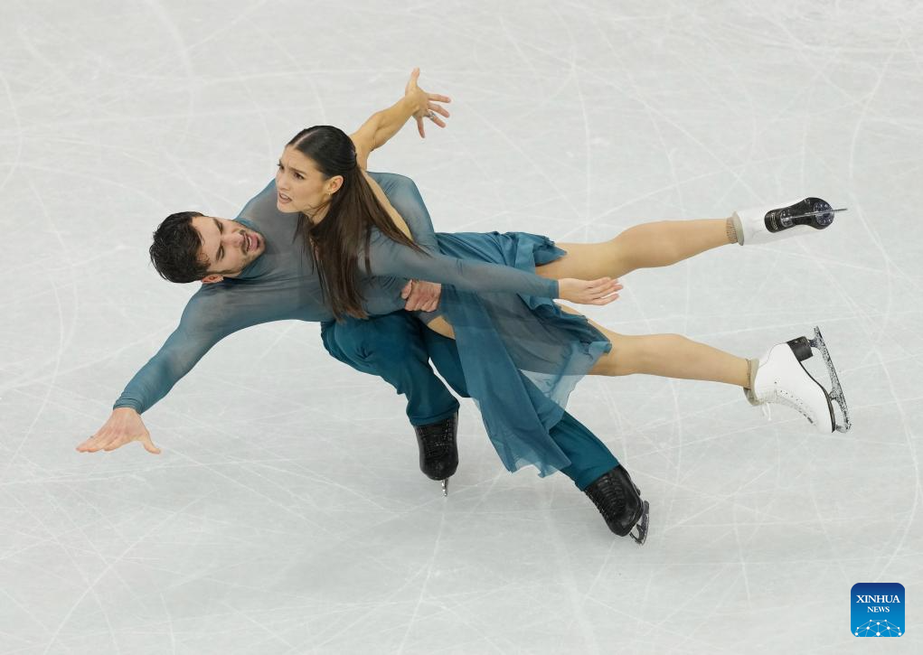 Laurence Fournier Beaudry and Guillaume Cizeron of France perform during the free dance competition of figure skating ice dance at the Milan-Cortina 2026 Olympic Winter Games in Milan, Italy, Feb. 11, 2026. (Xinhua/Xue Yuge)