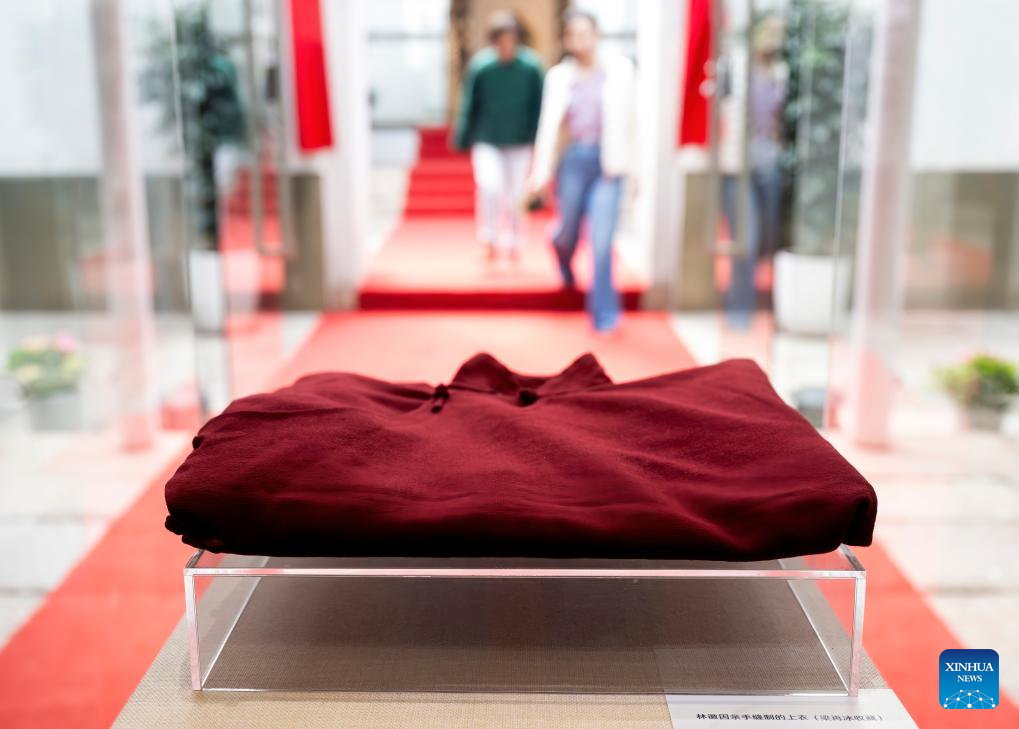 这是一件由林徽因亲手缝制的旗袍实物(2月13日摄)。2月13日,位于福州市三坊七巷塔巷的林徽因主题馆正式启动为期一个月的试开馆。展览以“人间四月天——福州古厝走出的林徽因”为主题,通过大量珍贵文献、实物与历史影像,展现林徽因的生平事迹、学术成就、文化贡献和家国情怀。[新华社记者 魏培全 摄]