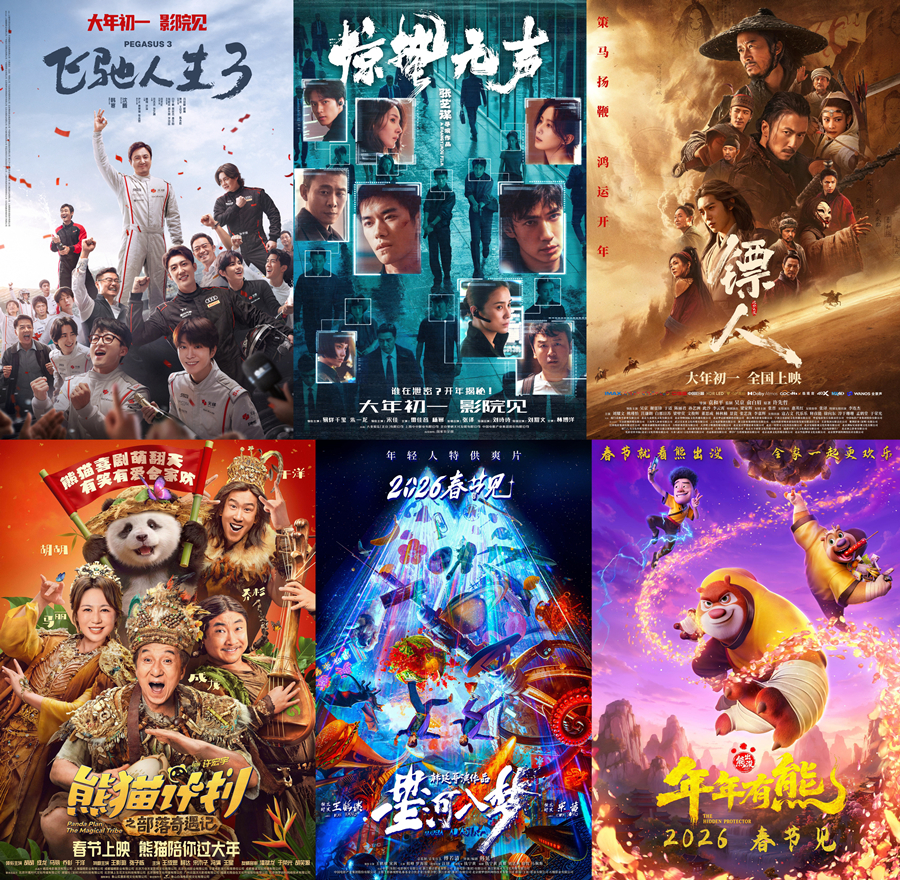 Posters for six major Spring Festival films. [Images provided to China.org.cn]