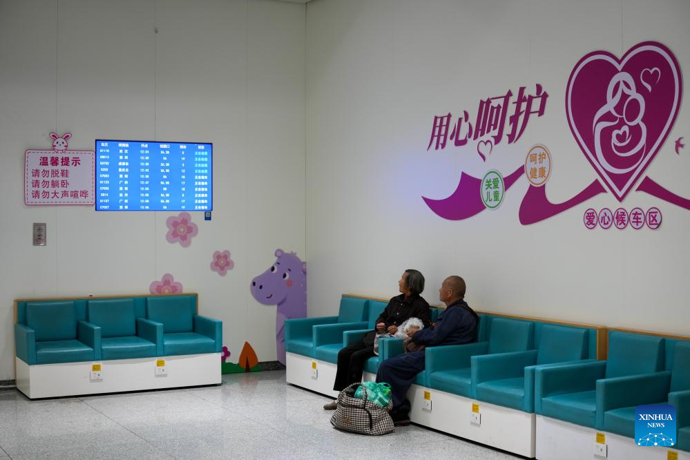 Passengers rest at the courtesy waiting area of Guangzhou Baiyun Railway Station in Guangzhou, south China's Guangdong Province, Feb. 19, 2026. During the Spring Festival travel season, civil aviation, railway, and other departments have increased transportation capacity and optimized convenient services such as air-rail intermodal transport, quiet carriages, luggage delivery, and priority channels for vulnerable groups, taking multiple measures to ensure passengers' safe and smooth travel. (Xinhua/Wu Lu)