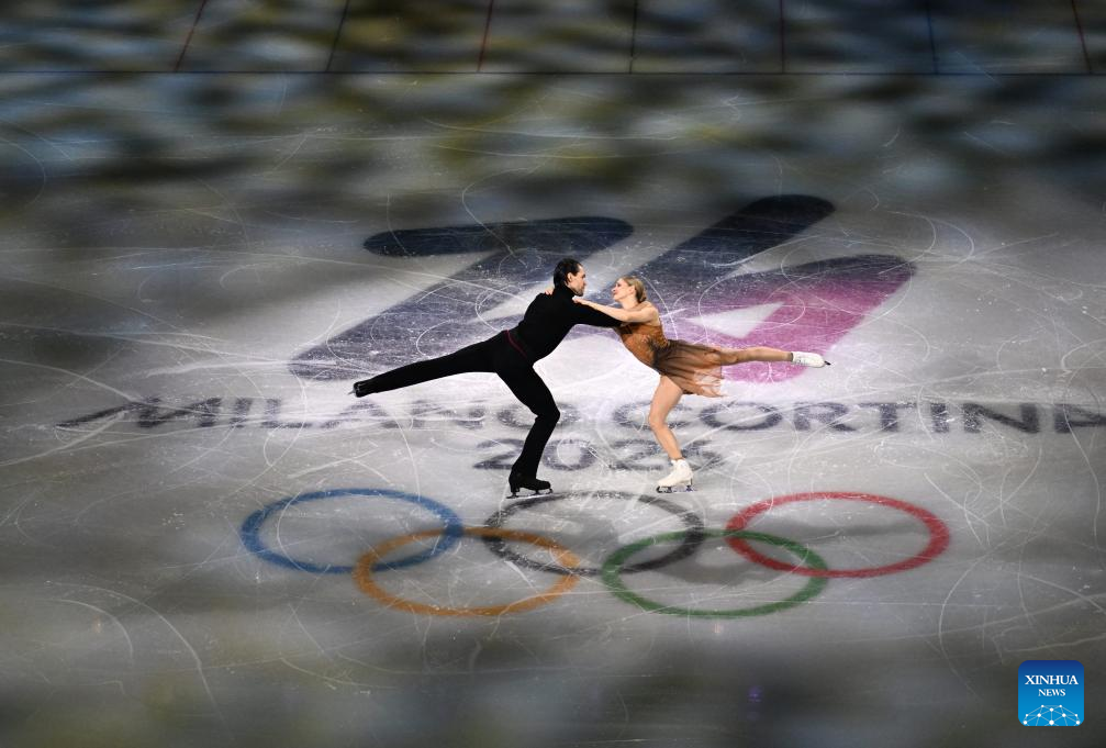 Fabienne Hase Minerva (R)/Nikita Volodin of Germany perform during the gala exhibition of figure skating at the Milan-Cortina 2026 Olympic Winter Games in Milan, Italy, Feb. 21, 2026. [Photo/Xinhua]
